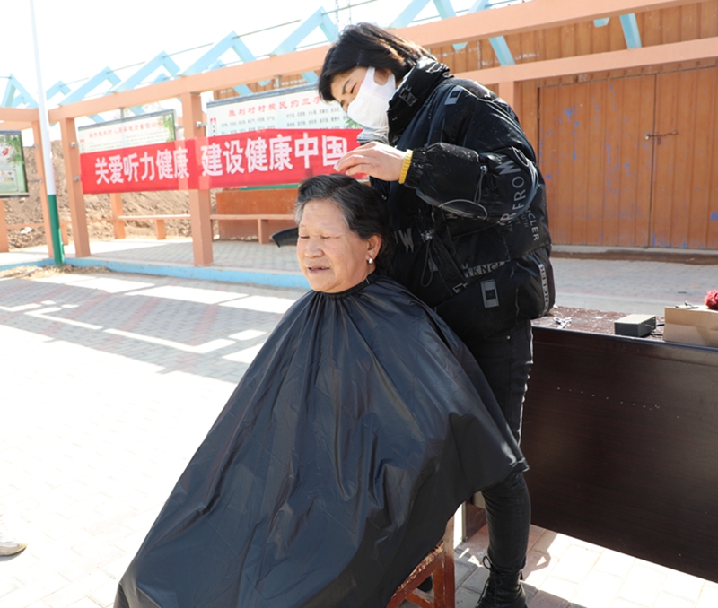 3月6日,在胜利村志愿服务集市上,义剪送关爱、义诊送健康、宣传送政策等志愿服务活动正有序展开。活动现场,大家气氛高涨,在温煦的阳光下,一张张脸庞上挂满了幸福。