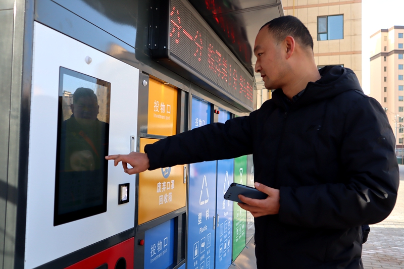 “我每天把垃圾分好类,过来投放,可以得到积分,积分也可以兑换生活用品。”颐景园小区居民王先生说。